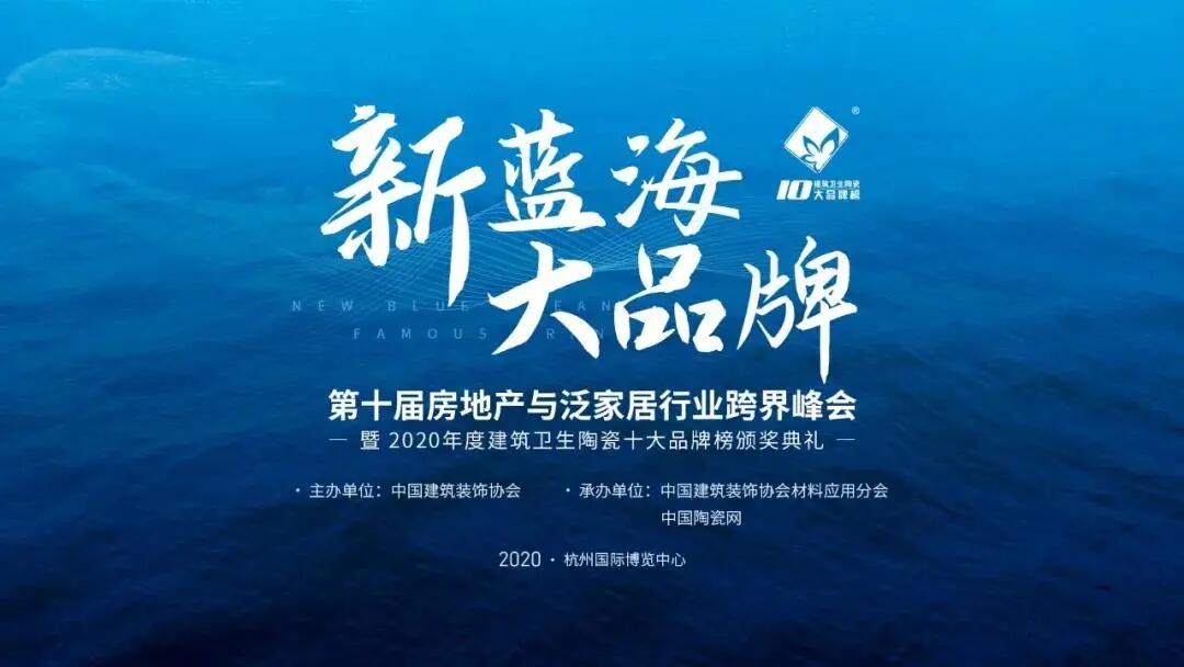 2020年8月31日 ,由中國建筑裝飾協(xié)會主辦、中國建筑裝飾協(xié)會材料應(yīng)用分會、中國陶瓷網(wǎng)承辦的第十屆中國房地產(chǎn)與泛家居行業(yè)跨界峰會暨2020年度建筑衛(wèi)生陶瓷“十大品牌榜”頒獎盛典在杭州國際博覽中心G20峰會主會場隆重舉行。